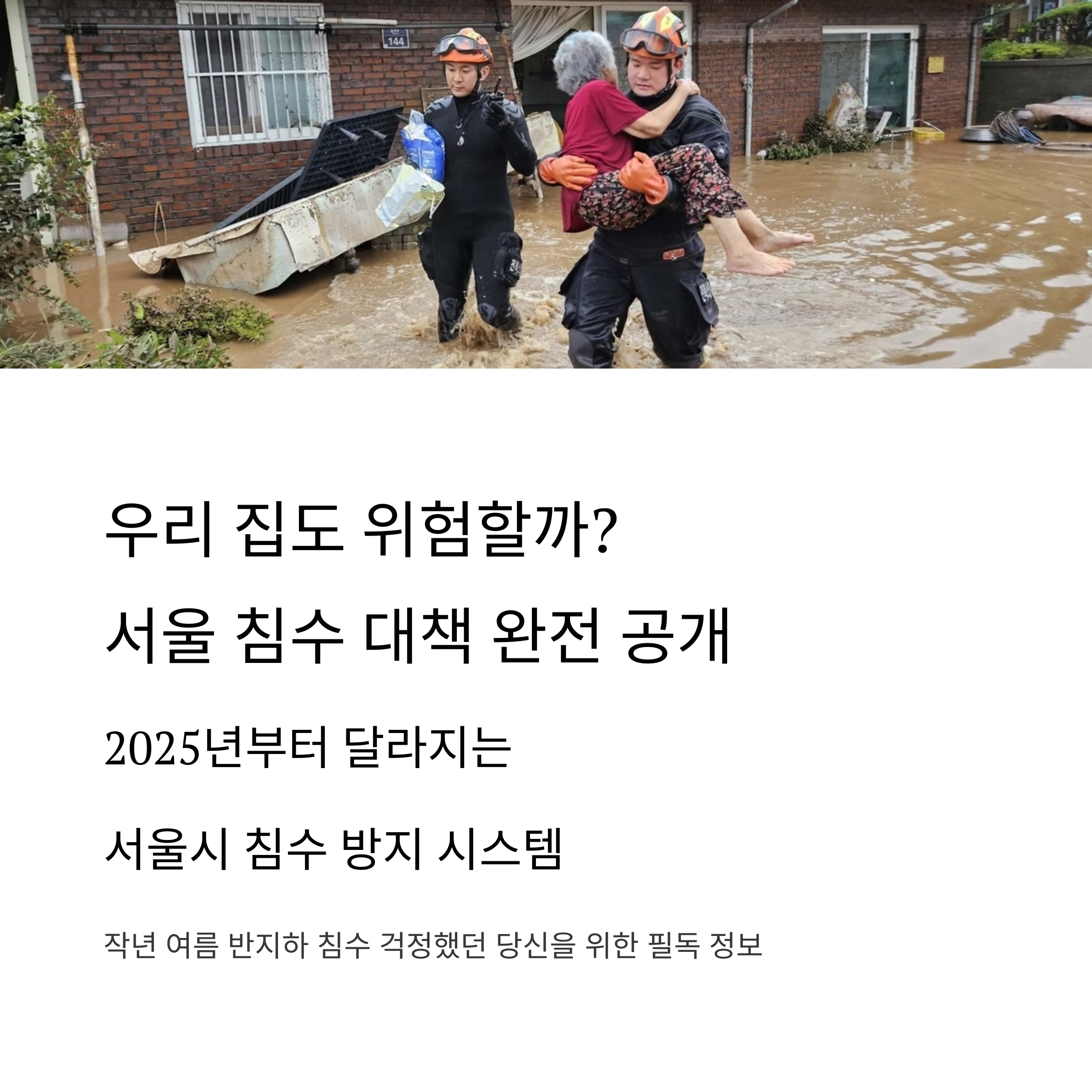 서울에 사는 우리 모두가 한 번쯤은 해봤을 걱정입니다. 특히 작년 여름 집중호우 때 SNS에 올라온 반지하 침수 영상들을 보면서 "남의 일이 아니구나" 싶었죠.