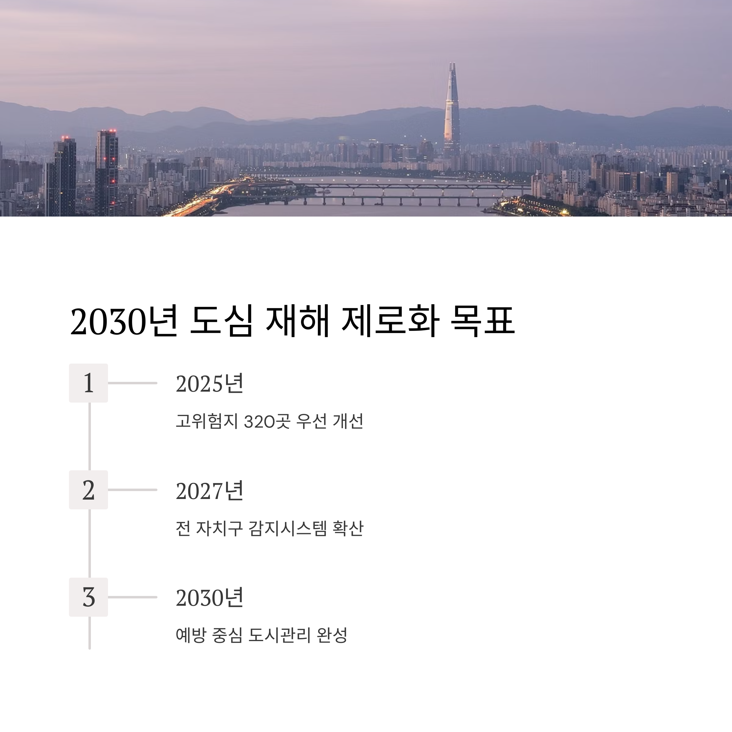 - 2030년까지: 예방 중심 도시관리 체계 완성