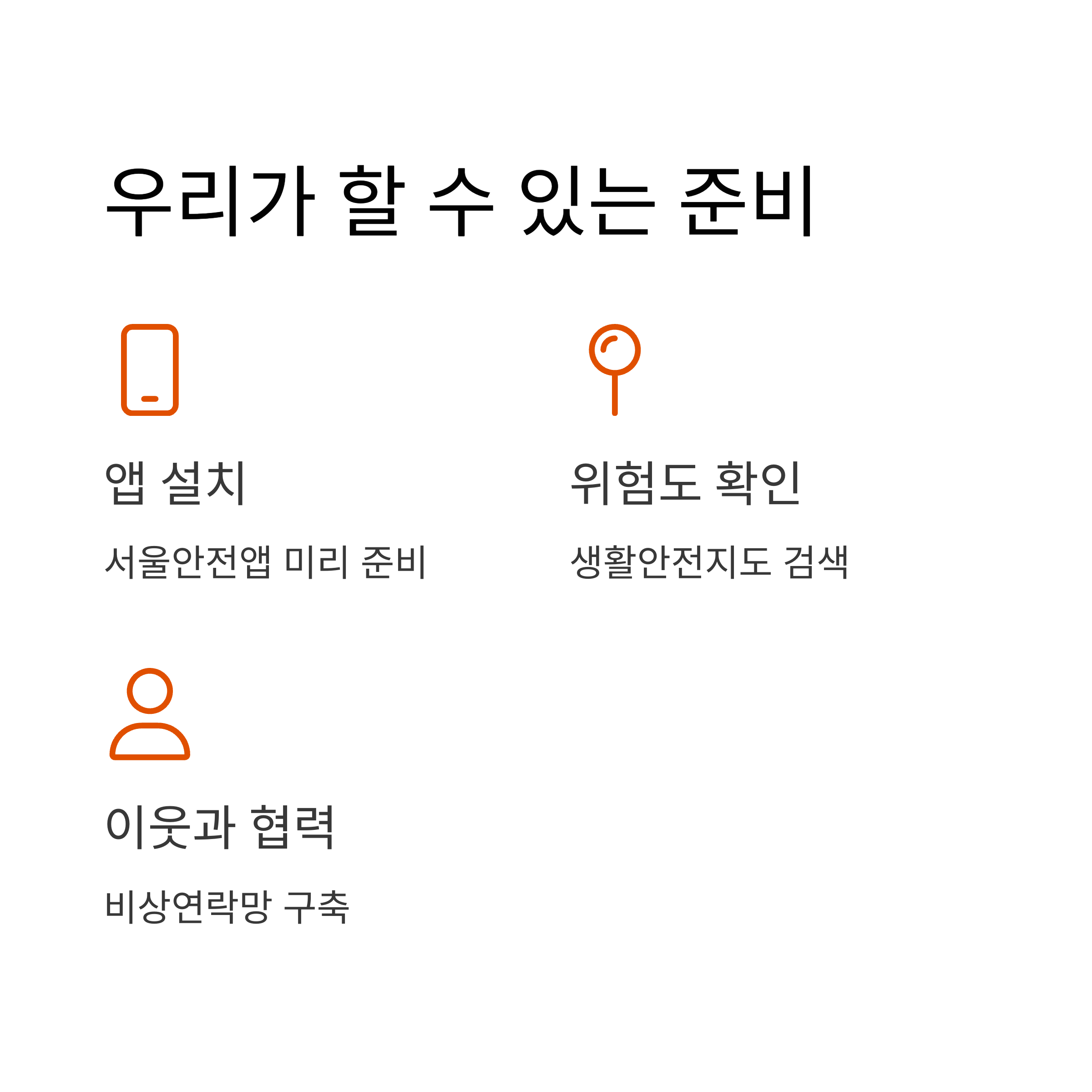 - 서울안전앱 또는 지역별 재난앱 설치