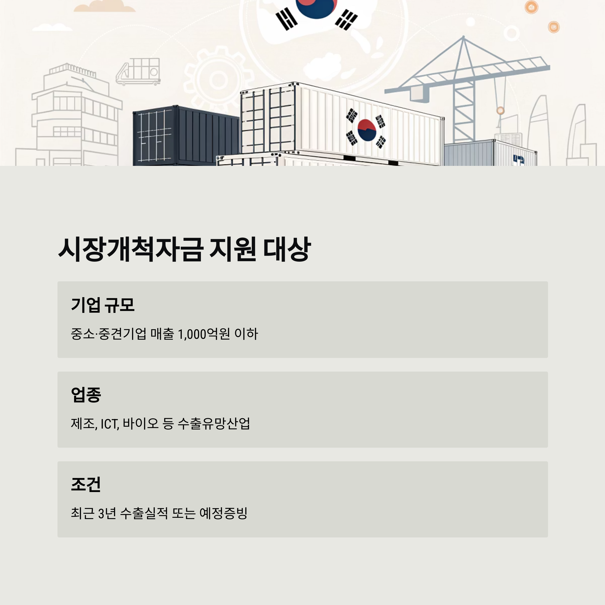 조건 최근 3년 이내 수출 실적 보유 또는 수출 예정 증빙 가능