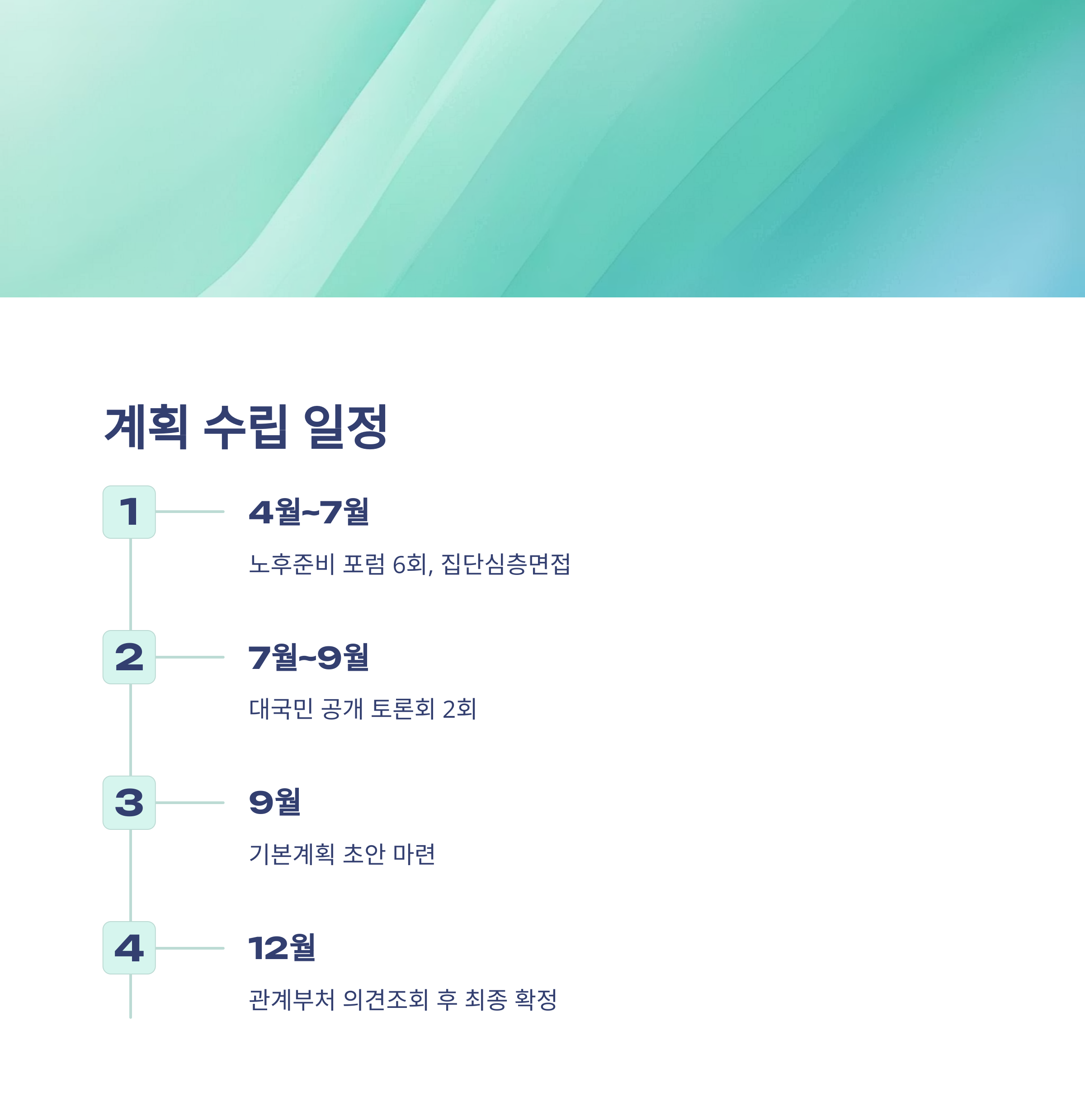 계획 수립을 위한 향후 일정은 어떻게 되나요?